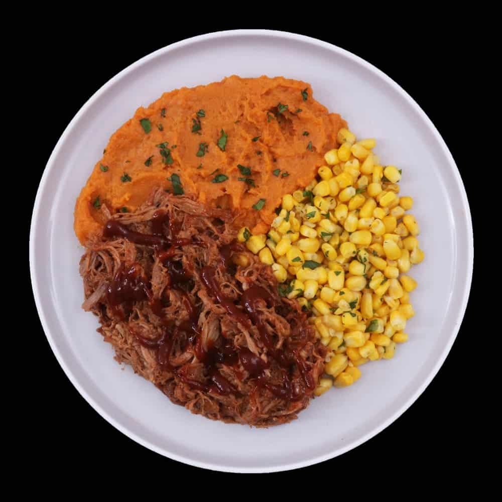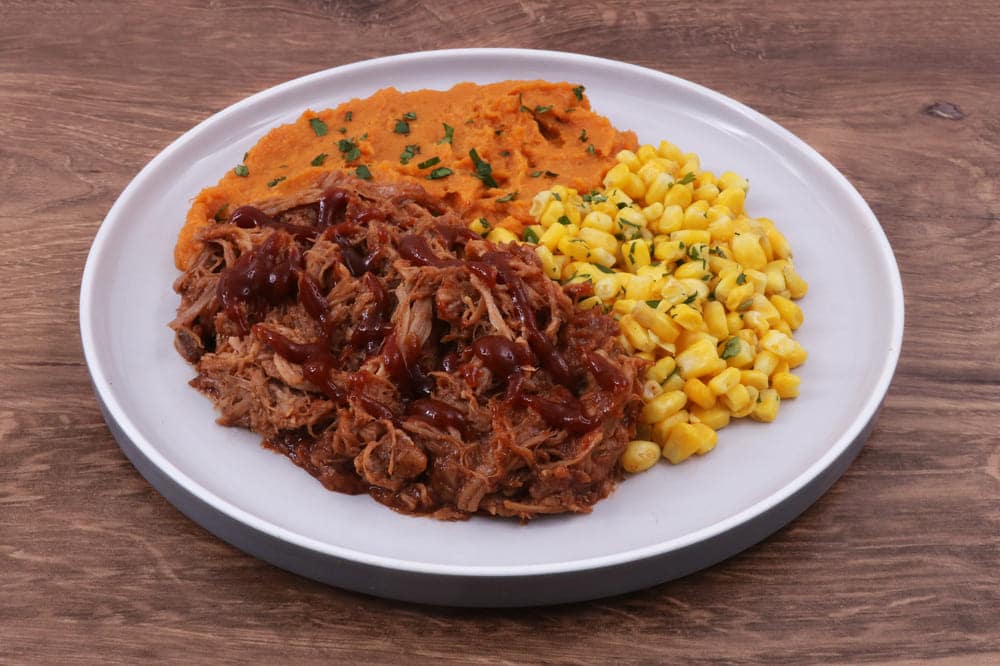 Corn [Corn, Butter Blend [Vegetable Oil Blend (soybean Oil, Palm Oil, Palm Kernel Oil), Water, Buttermilk (MILK), Contains 2% Or Less Of Salt, Cream (MILK), Mono And Diglycerides, SOY Lecithin, Sodium Benzoate, Natural Flavor, Artificial Flavor, Vitamin A Palmitate, Carotene], Cilantro, Salt], Mashed Sweet Potatoes [Sweet Potato, Butter (MILK), Cinnamon, Nutmeg], Pulled Pork [Pork, BBQ Sauce [High Fructose Corn Syrup, Tomato Puree (Water, Tomato Paste), Vinegar, Molasses, Modified Food Starch, Apple Cider Vinegar, Contains Less Than 2% Of Salt, Natural Hickory Smoke Flavor, Mustard Flour, Spice, Honey, Dried Onion, Dried Garlic, Potassium Sorbate], Garlic Powder, Paprika, Brown Sugar, Salt, Black Pepper, Cumin, Cayenne Pepper, Mustard Seeds], BBQ Sauce [High Fructose Corn Syrup, Tomato Puree (Water, Tomato Paste), Vinegar, Molasses, Modified Food Starch, Apple Cider Vinegar, Contains Less Than 2% Of Salt, Natural Hickory Smoke Flavor, Mustard Flour, Spice, Honey, Dried Onion, Dried Garlic, Potassium Sorbate]